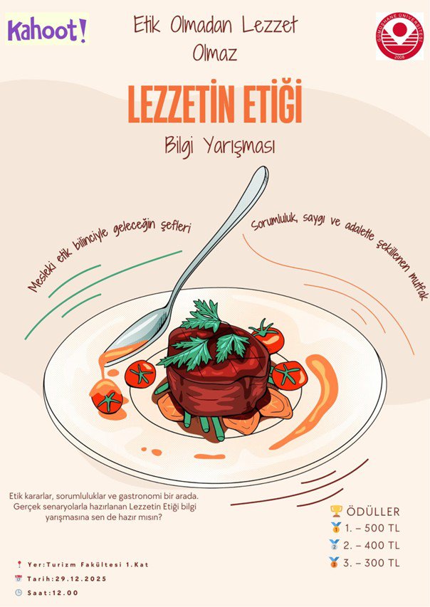 During the event, participants' knowledge level was measured through questions prepared on ethical decision-making processes in the field of gastronomy, professional responsibilities, and real kitchen scenarios. The competition, consisting of simulation-based and multifaceted questions, drew attention with its structure that questioned the practical application of ethical concepts.
