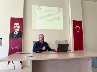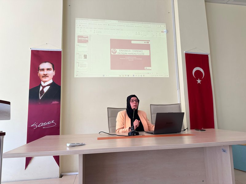 As part of the orientation program, several guest speakers from various university units gave presentations to help students become more familiar with the institution. Muhammed Hakan BULUT from the Student Affairs Department, Hakan KARADAĞLI from the Health, Culture and Sports Department, Yavuz TANGUROĞLU from the Library and Documentation Department, and Lecturer Nalan DEMİR from the Erasmus Coordination Office provided information about the functioning of their respective departments.