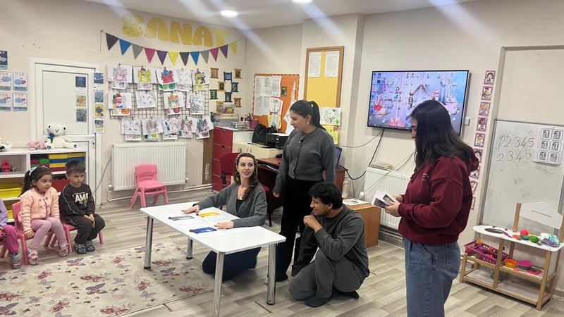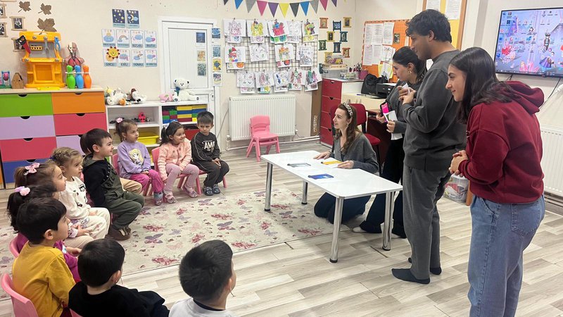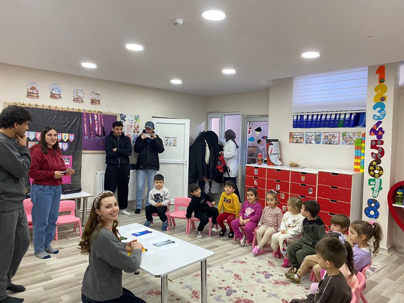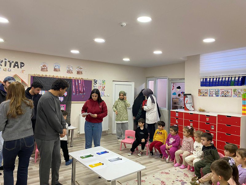 The event, organized by a group of six students (whose names are listed below), focused on educating kindergarten students about environmental cleanliness, recycling, and nature conservation. The program included showing educational videos prepared by the TEMA Foundation. Following the video presentation, games with environmental and recycling themes were played to reinforce the children's understanding.
