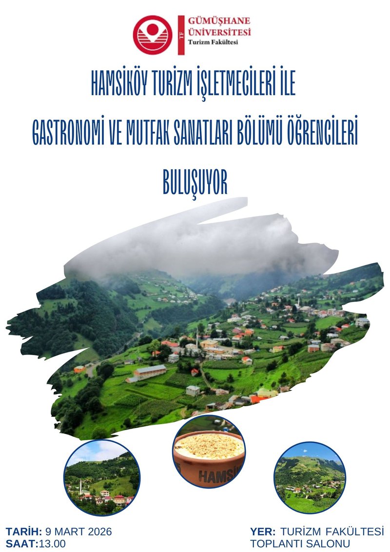 Geçtiğimiz günlerde fakültemizi ziyaret ederek işbirliği görüşmesi gerçekleştiren Hamsiköy İşletmecilerinin, Gastronomi ve Mutfak Sanatları Bölümü öğrencileriyle bir araya gelmesi için toplantı düzenlenecektir. Tüm Gastronomi ve Mutfak Sanatları Bölümü öğrencilerimizin toplantıya katılımını bekliyoruz.